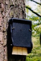 Auch Fledermäuse scheuen die Nähe zum Menschen nicht. Spezielle Behausungen für Fledermäuse nehmen sie dankbar an. Es gibt ganz verschiedene Modelle und man sollte sich vorher genau erkundigen, welche Arten in der Behausung Unterschlupf finden. Diese sollten in der Gegend auch tatsächlich vorkommen. Dies findet man durch eigene Studien und Beobachtungen heraus, oder man ruft bei Umweltschutztelefonen an, die es normalerweise über das Land verteilt flächendeckend geben sollte. Die Farbe Schwarz des Fledermauskastens zieht die Sonne besonders intensiv an. Fledermäuse lieben es warm und kuschelig.