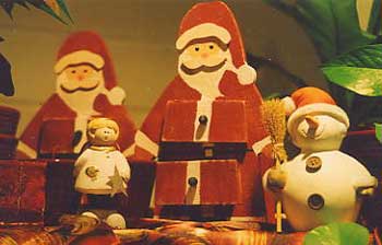 Einfach schön sind diese Weihnachtsmänner aus Holz, sowie der Schneemann und der kleine Engel. Wenn das keine Freude aufkommen lässt. |