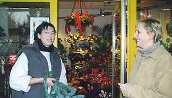Freundlich und kreativ sind auch die Mitarbeiter des Blumenladens. Mit geschickter Hand verwandeln sie einen schlichten grünen Kranz oder einen einfachen Korb in ein weihnachtliches Meisterwerk. |