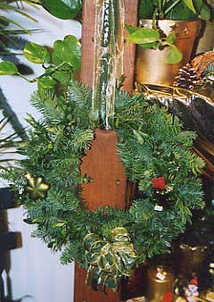 Gebundene Türkränze sind in der Regel zierlich und auch der Weihnachtsschmuck sollte hier sparsamer eingesetzt werden. |