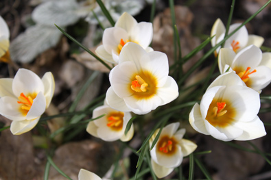 Wundervoll, wie unterschiedlich die Krokusse farblich gestaltet sind! Cremeweiß mit einer kräftig orangefarbenen Mitte sind sie zugleich erfrischend wie kontrastreich. |