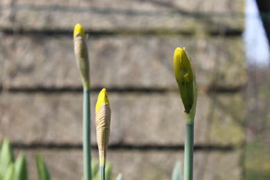Ostern rückt näher und endlich zeigen die ersten Narzissen, auch Osterglocken genannt, Farbe..