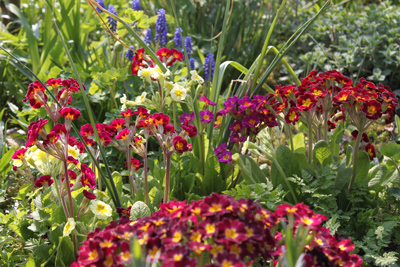 Im Primelgarten wird es nun von Tag zu Tag bunter und fröhlicher. Einfach unglaublich, diese Farben. Und dabei habe ich sie doch alle irgendwann einmal nur aus dem Supermarkt geholt. Wie man sieht, lohnt sich das Auspflanzen der verblühten Exemplare!
