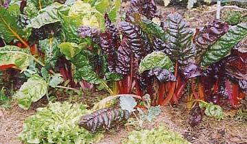 Buntstieliger Mangold ist herrlich anzuschauen. Die saftigen Stängel kann man im gemulchten Garten oft bis Jahresende noch ernten. Erste leichte Fröste werden durch die höhere Bodentemperatur häufig abgefangen. |