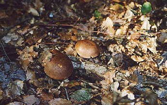 Es begann Spaß zu machen und vor allem als blutiger Pilzneuling beugt man sich noch zu jedem Pilz hinunter, um ihn zu betrachten. Diese beiden hier waren im Laub kaum zu erkennen und erst nach dem Abschneiden sahen wir, um wen es sich handelte.. |