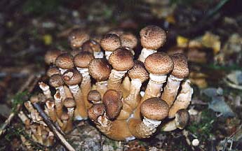 Hier im Bild ein noch größerer Büschel vom Hallimasch. Roh ist dieser Pilz giftig, daher sollte man ihn lange garen und das Kochwasser unbedingt weggießen. Manche Menschen vertragen ihn überhaupt nicht.