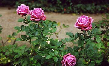 Viel zarter dagegen diese Rose mit locker aufgebauten Blüten und in leuchtendem Rosa. |