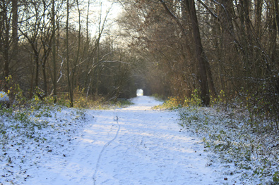 Erstaunlich, wie hell der Wald doch wird, wenn die Wege mit einem leuchtenden Weiß 'eingepinselt' worden sind |