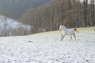 Oder hat uns die kleine Herde - bestehend aus vier Tieren- nur an der Nase herumgeführt? Denn was wir hier erleben durften, war schon ein richtig schönes Pferde-Winter-Märchen, wobei der Schimmel scheinbar die motivierende Kraft darstellte... |