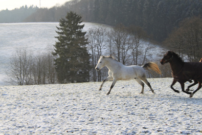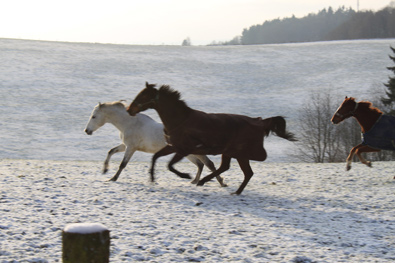 Im gestreckten Galopp wurde hier zu einem kleinen Wettlauf aufgefordert, wozu der hübsche Rappe nicht erst überredet werden musste |
