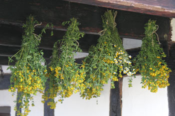 Es können weiterhin viele Kräuter geschnitten, gebündelt und an einem schattigen, luftigen Ort zum Trocknen kopfüber aufgehängt werden: |