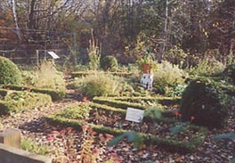 mit buchsgefassten Beeten, Buchskugeln und vielen Kräutern vergisst man