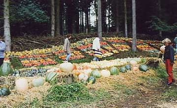 Von weit her leuchteten die bunten Kürbisse wie Blumenbeete auf dem Gelände von Kriegers Gärtnerhof in Langerwehe. Die Veranstalter des Marktes haben sich mit der Präsentation ihrer Kürbisse wirklich viel Mühe gemacht. Vor allem die Halloween-Kürbisse und die kleineren Zierkürbisse fanden viele Abnehmer. |