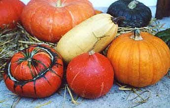 aus Bischofsmütze, Hokkaido und Halloween-Kürbis (vorne v.links),