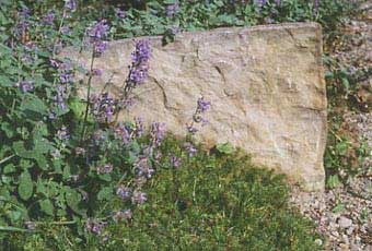 Diese ehemalige Beeteinfassung aus Sandstein verträgt sich anscheinend ausgezeichnet mit der robusten und langblühenden Katzenminze (Nepeta x faassenii). |