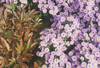 Aber auch mit dem verfärbten Laub der chinesischen Pfingstrose bildet die Kissenaster ein attraktives Duo. |