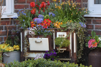 .. als auch ganz außergewöhliche Anblicke wie diesen uralten Herd, den ein Blumenfreund mit bunten Blumen so üppig bestückt hatte.