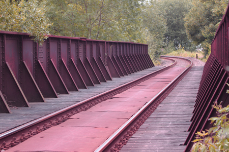 Eine alte Bahnstrecke, die fast zum gemütlichen Spazieren zwischen den Schienen verführte.