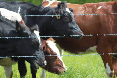 Auf der gegenüberliegenden Weide schien sich das schwarz und braunbunte Vieh tödlich zu langweilen. Sie trabten erwartungsvoll neben uns her und hofften wohl, dass wir sie mitnahmen. Doch wohin nur? |